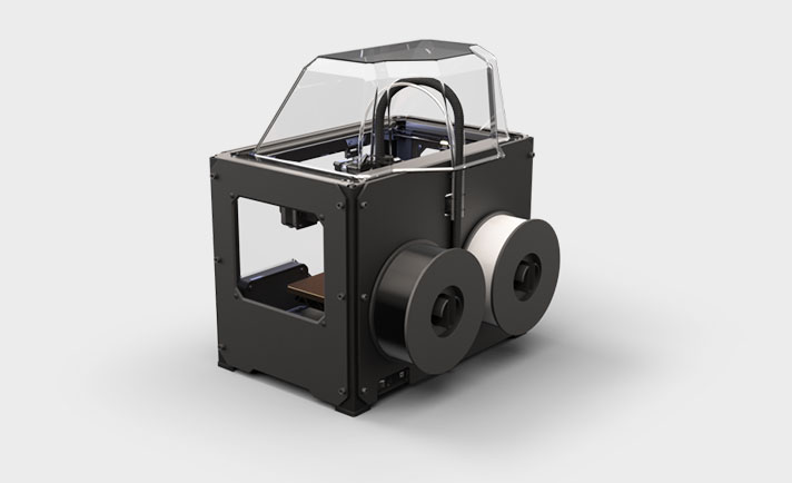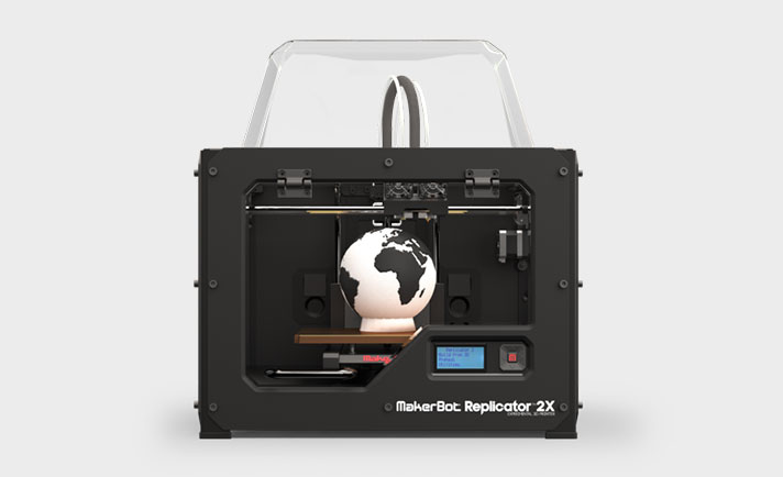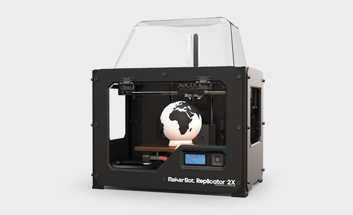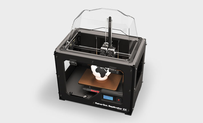 3D-принтер Makerbot Replicator 2X оборудован двумя печатающими головками, благодаря которым осуществляется печать сразу двумя цветами. Среди принтеров такого класса это определенно лучшая модель. Она обрела популярность за счет применения в печати ABS-пластика, палитра цветов которого достаточно богата для создания различного плана деталей и объектов.
