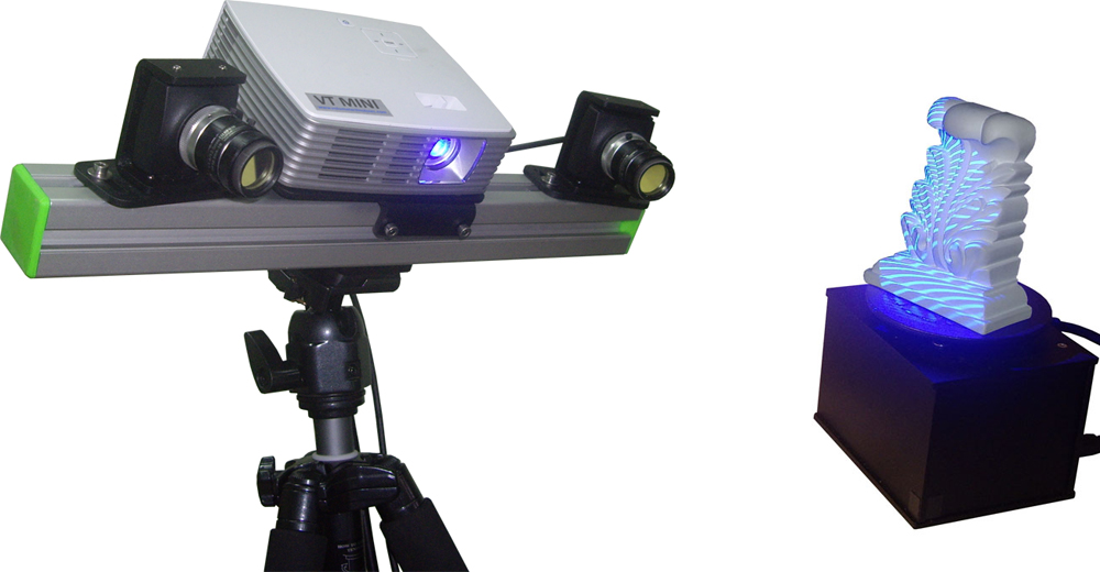 В отличие от серии VT Atom, конструкция VT MINI более жесткая, а считывание информации с объекта происходит с помощью двух оптических камер для технического зрения, при этом в качестве источника света, как и в модели 3d сканера VT Atom, используется компактный проектор на светодиодах (LED-элементах). Такой тип проектора позволяет легко перевозить 3D сканер, обеспечивает высокую отказоустойчивость и стабильность работы на долгие годы.