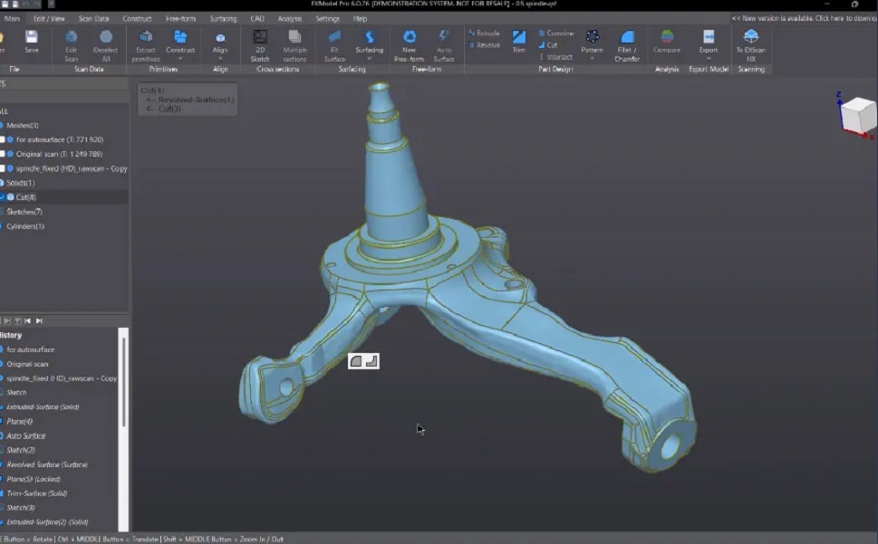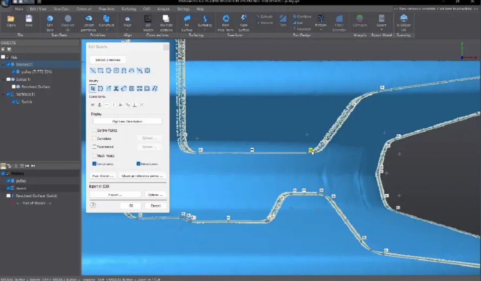 EXModel 3 года предоставляет богатый набор инструментов, способных легко конвертировать 3D-сетки в профессиональные CAD-модели. Программное обеспечение ориентировано на извлечение всех необходимых элементов из сеток для их непосредственного применения в CAD-программах, что устраняет разрыв между 3D-сканированием и проектированием.
