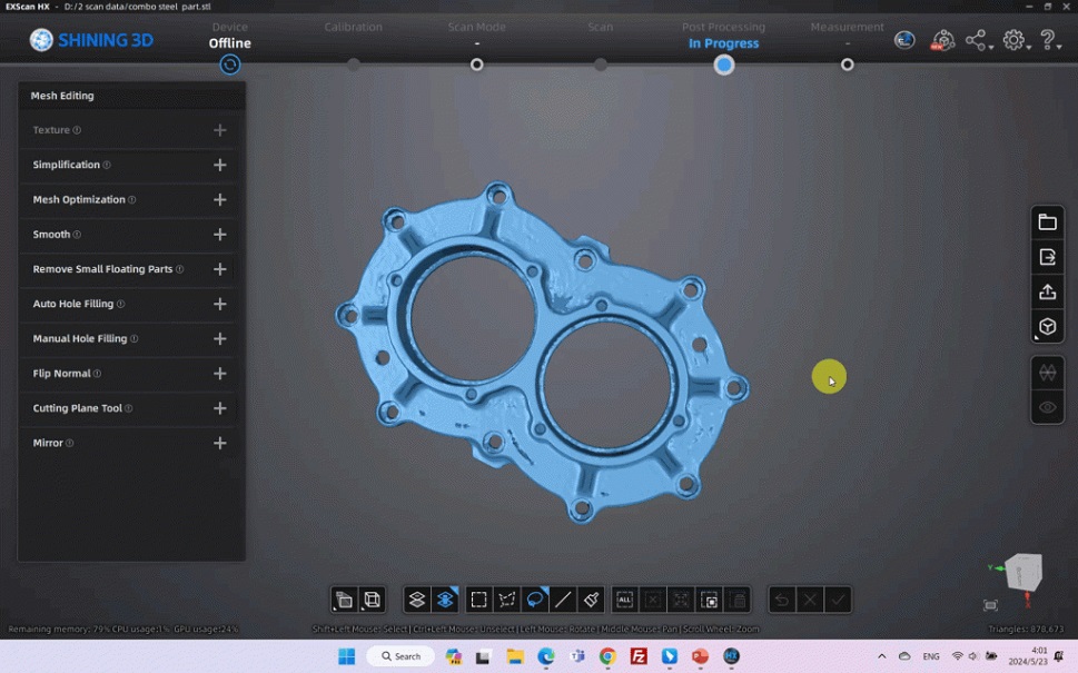 К тому же, EXModel предлагает множество вариантов экспорта. Пользователи могут сохранять файлы в стандартных форматах IGES или STEP, что облегчает их интеграцию с другими пакетами CAD/CAM. Эти экспортированные файлы также могут быть использованы для 3D-печати или обработки на станках с ЧПУ, что значительно снижает барьер для входа и повышает общую ценность сканера и программного обеспечения.