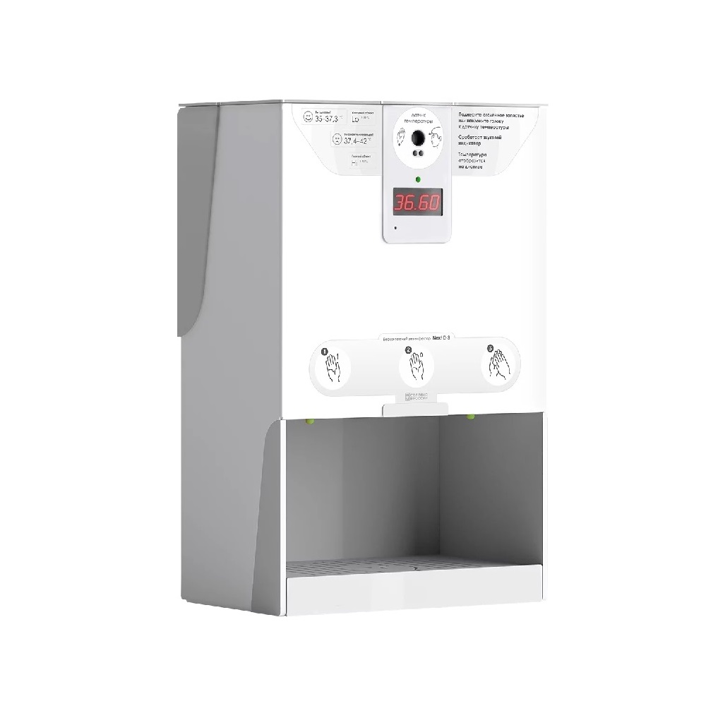 Дезинфектор для рук LIGA Next D-3 используется на предприятиях общественного питания и торговли, а также в производственных цехах, кинотеатрах, заправках, бизнес-центрах и в других местах с большой проходимостью для измерения температуры и бесконтактной обработки кистей рук дезинфицирующими жидкими составами на основе спирта с целью максимальной защиты от инфекционных заболеваний. Модель оснащена датчиком наличия антисептика и возможностью настройки распыления. Корпус выполнен из алюминиевого композита.
