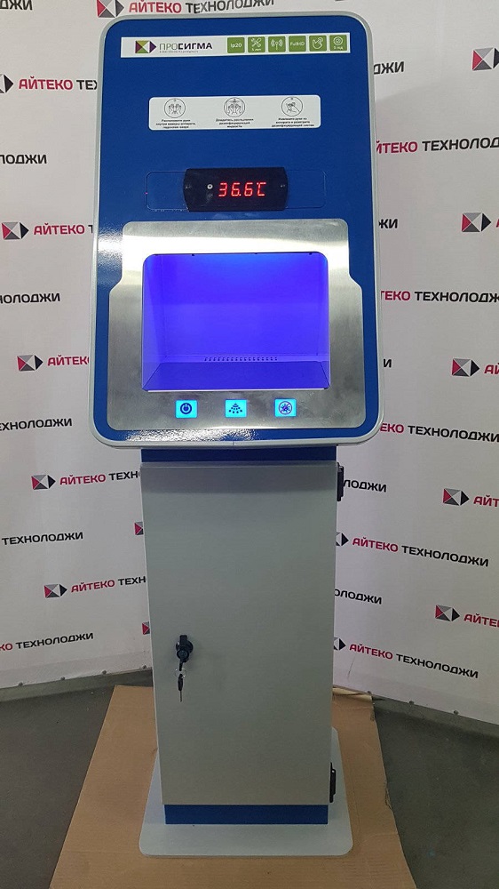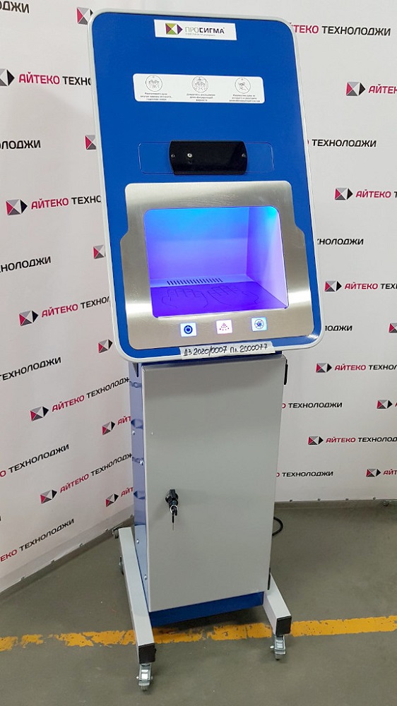 Дезинфектор в комплектации (база) имеет стальной корпус с алюминиевым профилем, оборудован баком для жидкости объемом 10 литров и световым датчиком. Отсек для распыления изготовлен из нержавеющей стали. В комплект поставки входит тумблер питания, LED подсветка, кнопка пуска.