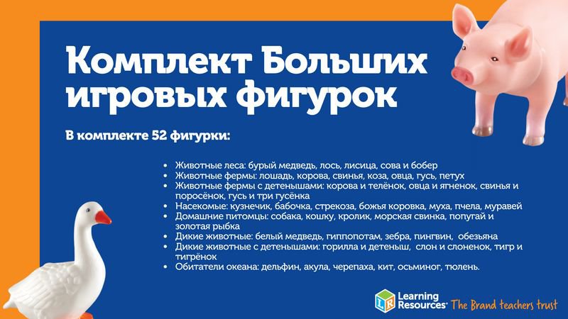 Играя с ними, малыши смогут понять, какие животные являются дикими, а какие — домашними. Так, например, с животными фермы малыши узнают, какие звуки издает корова или лошадь, сразу же попробуют воспроизвести их, что благотворно скажется на развитии речи.