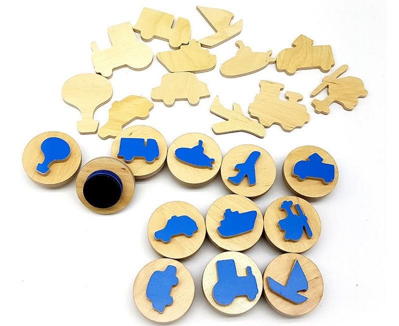 №7) 12 магнитных плоских фигурок транспорта и 12 их дублей без магнитов;