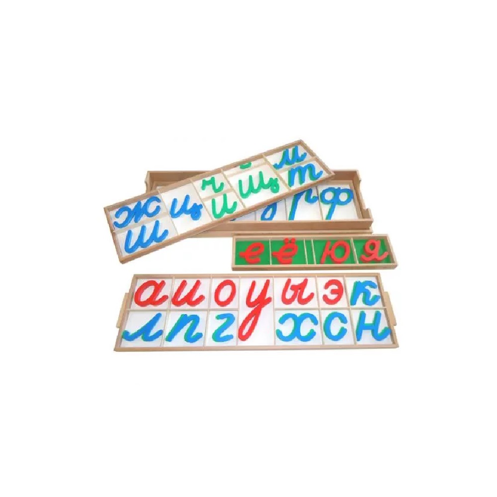 Новый вариант подвижного алфавита выполнен в соответствии с комплектом «Обучение письму» и учитывает потребности ребенка. В комплекте «Анализ и письмо» буквы имеют свои цвета: согласные разделены на синие – твердые и зеленые – мягкие, гласные окрашены в красный цвет. Отдельно есть ящик с гласными, состоящими из 2-х звуков, чтобы ребенок мог быстро сориентироваться и разобраться в сложной фонетике русского языка.