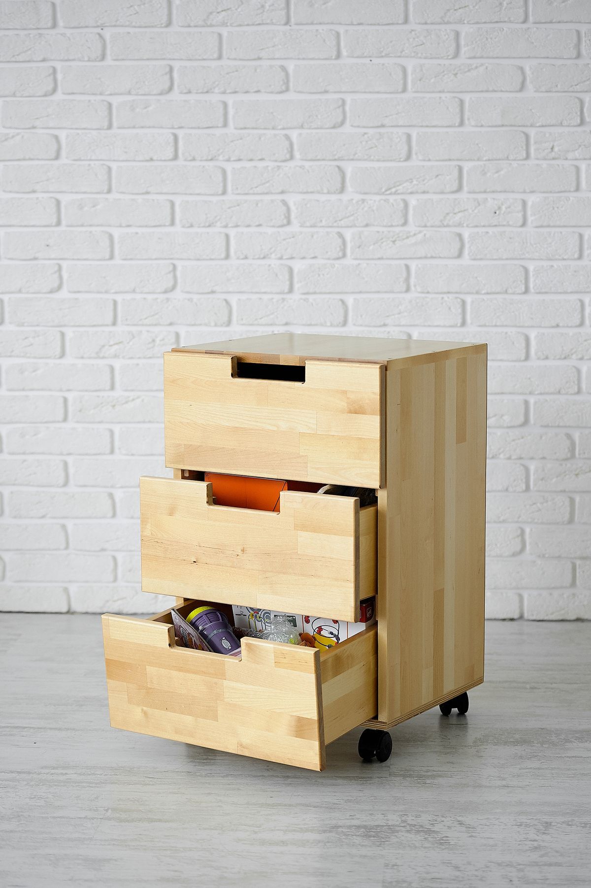 • Маленький размер тумбы дает свои преимущества: она не занимает много места, компактно располагает инструментарий, и позволяет ребятам самостоятельно доставать игрушки, с которыми понравилось работать.