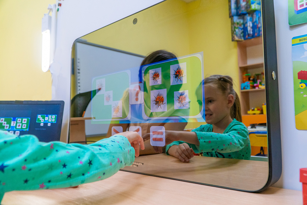 В "Умном зеркале" ArtikMe ребенок видит одновременно своё отражение и волшебный мир, в котором живут сказочные персонажи. Герои сопровождают по зеркальному миру, дают задания и выполняют их вместе. При верном выполнении задания ребенок получает одобрение персонажа в зеркале.