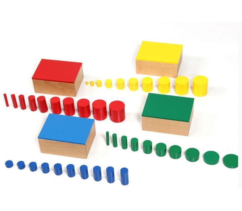 Развивающий игровой набор: Работа с блоками-вкладышами "Монтессори" состоит из 4 блоков выполненных из бука.Размеры каждого блока: длина 46 см, высота 7 см, ширина 8 см. Ребенок учится зрительно воспринимать величину предмета, находить пары: цилиндр – отверстие в блоке. Косвенно происходит развитие моторики, подготовка пальцев к письму, создается сенсорная база для последующего ознакомления ребенка с понятием «большой-маленький», «высокий-низкий», «толстый-тонкий».