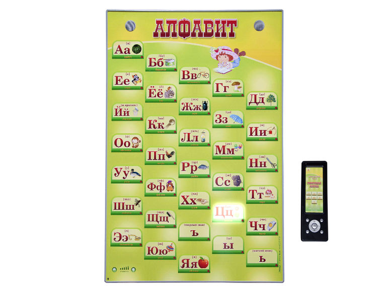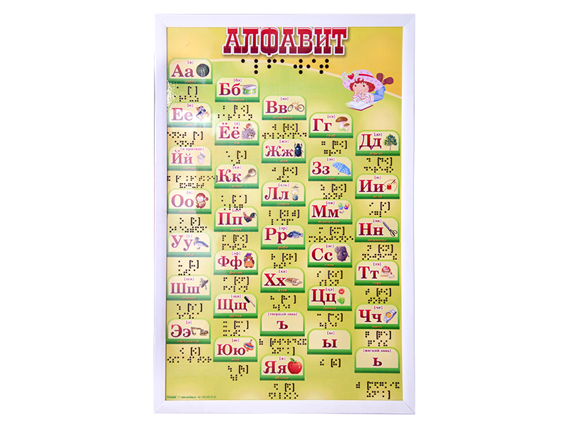 Интерактивный стенд "Говорящая азбука" адаптивный, с пультом управления и планшетом со шрифтом Брайля Zarnitza представляет собой панель c раздельной световой индикацией, на которой представлены буквы русского алфавита. В конструкцию учебного оборудования интегрированы высокочувствительные сенсоры для управления стендом при помощи интерактивного воздействия приемо-передающих устройств. Оборудование оснащено программным обеспечением Виртуальный учитель. Управление работой стенда осуществляется с беспроводного пульта управления.
