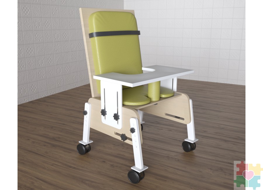 Детский стул модели «Новые горизонты» №1 разработан для детей с ДЦП и прочими нарушениями двигательного аппарата как адаптационный модуль. Конструкция стула предполагает автономность – в комплекте уже есть небольшой столик, на котором можно разместить учебник, или использовать его в качестве обеденного. Столешницу можно отрегулировать до нужной высоты. Мобилен благодаря колесикам. Предназначен для оборудования кабинетов специалистов, занимающихся реабилитацией детей с ОВЗ, учебных помещений в центрах коррекции и реабилитации.