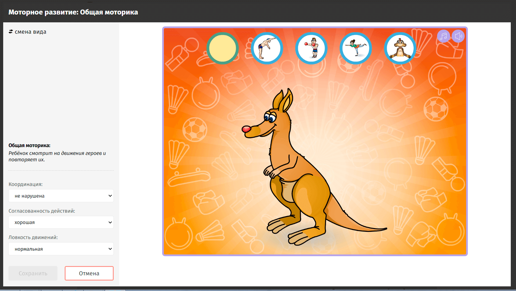 Оценку по каждому упражнению дает специалист. Позже эти результаты можно посмотреть и скорректировать текущий план занятий, если необходимо.