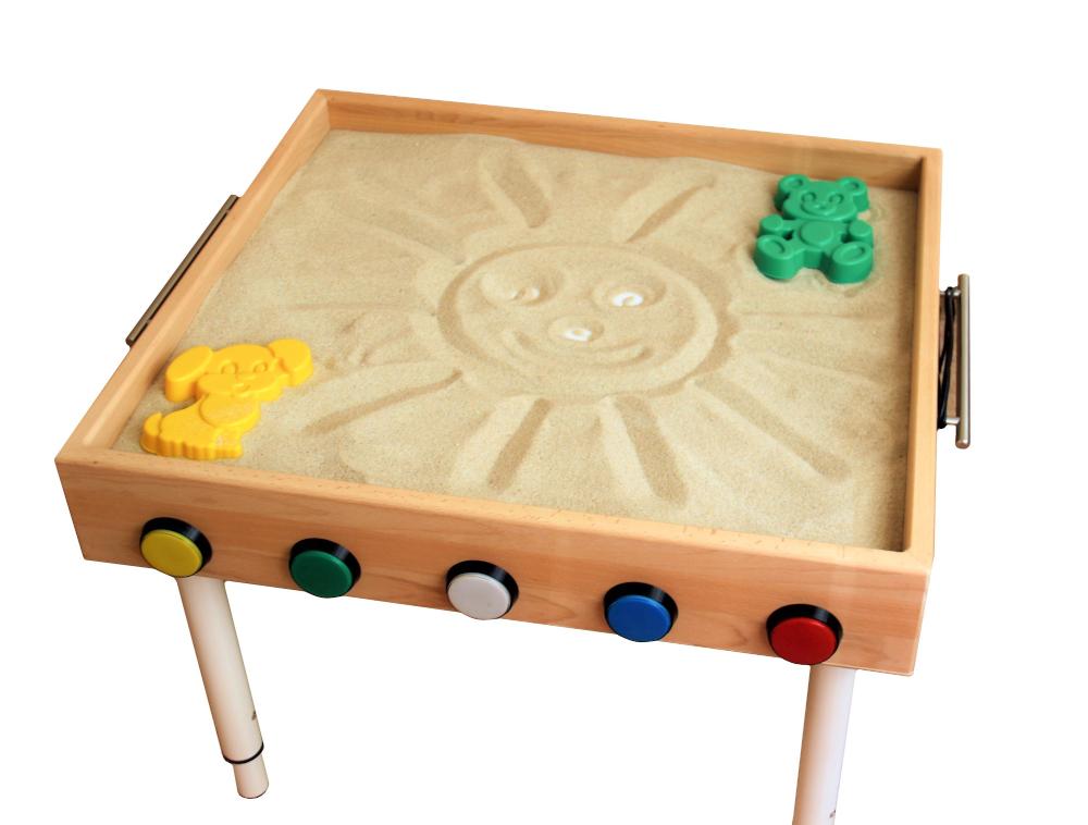 Панель имеет бортики от высыпания песка. Материал каркаса панели бук. Материал рабочей поверхности панели матовое оргстекло. Панель стоит на 4 опорах регулируемых по высоте. На лицевой стороне панели расположены 5 кнопок разного цвета. Количество цветов подсветки стола 7. Выбор цвета происходит с помощью нажатия кнопки или комбинации кнопок. Наличие автоматического режима переливания цветов, который должен включаться с помощью нажатия комбинации кнопок. В случае нахождения панели в состоянии бездействия в течение 8 ч происходит автоматическое отключение подсветки. Ручное отключение подсветки происходит с помощью зажатия любой кнопки на 3 секунды. Световая панель питается от сети переменного тока 220 В.