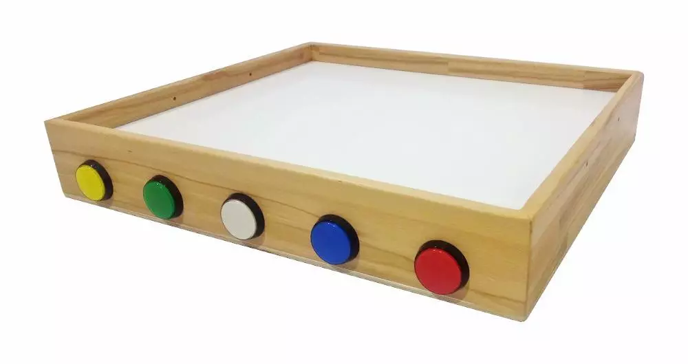 Панель имеет бортики от высыпания песка. Материал каркаса панели бук. Материал рабочей поверхности панели матовое оргстекло. На лицевой стороне панели расположены 5 кнопок разного цвета. Количество цветов подсветки стола 7. Выбор цвета происходит с помощью нажатия кнопки или комбинации кнопок. Наличие автоматического режима переливания цветов, который должен включаться с помощью нажатия комбинации кнопок. В случае нахождения панели в состоянии бездействия в течение 8 ч происходит автоматическое отключение подсветки. Ручное отключение подсветки происходит с помощью зажатия любой кнопки на 3 секунды. Световая панель питается от сети переменного тока 220 В.
