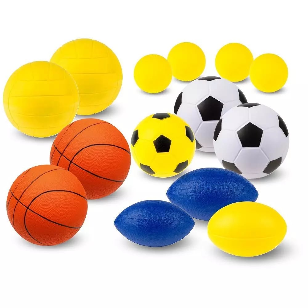Комплект включает в себя мягкие мячи для различных игр и упражнений (14 шт.).
