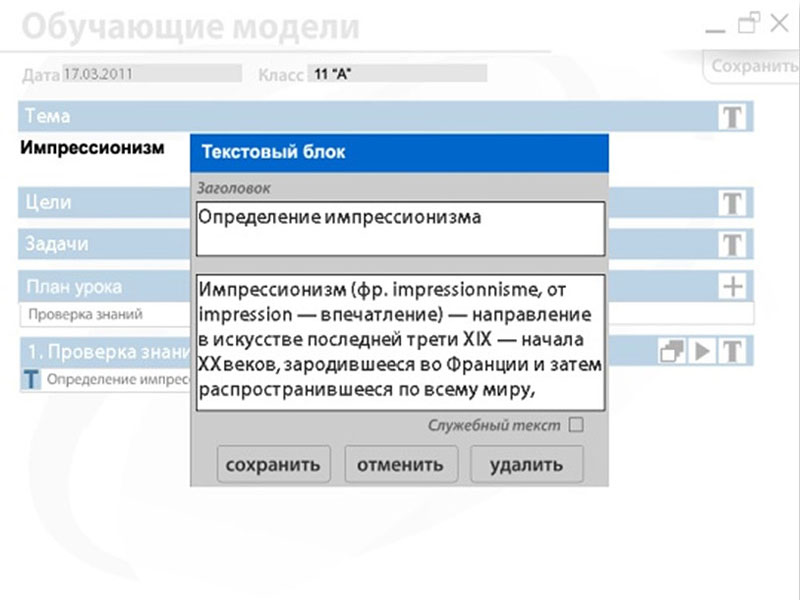 Программа включает три функциональных модуля – Поурочное планирование, Воспитательная работа, Раздел профессионала, – каждый из которых представляет собой интерактивную среду-конструктор.