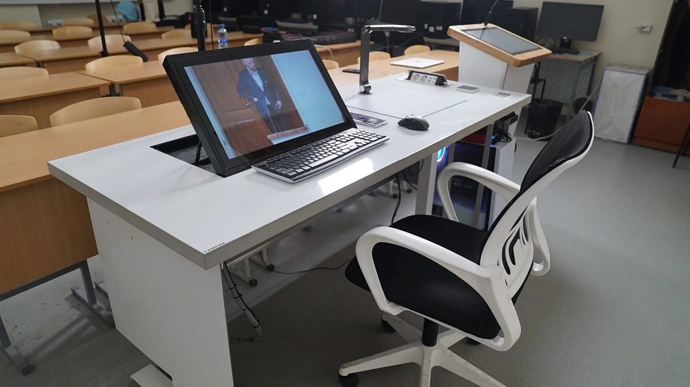 Интерактивный класс Azbooka Class 30+система управления комфортом даёт возможность проводить комбинированные уроки в учебном заведении объединяя присутствующих очно учащихся с теми, кто находится на дистанте, при этом сохраняя все преимущества как очного, так и дистанционного обучения: