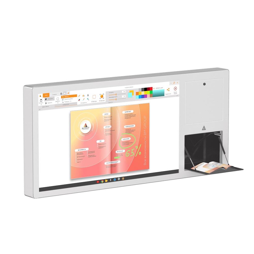 Оболочка BM AURA предназначена для комфортного использования интерактивного устройства. Представьте, что данная оболочка - это обычный рабочий стол, вы можете добавлять сюда любые приложения или удалять их, менять цветовую схему, выходить в интернет, смотреть видеоролики, создавать файлы. Однако, в этот раз все будет безопасно и удобно благодаря четкому разделению возможностей администратора и пользователя.