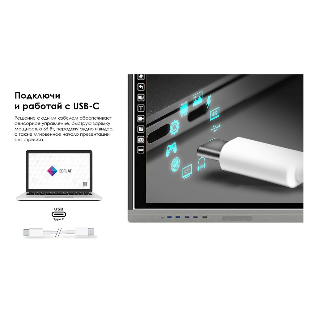 Интерактивная панель EdFlat EDF65CT M3 предназначена для того, чтобы сделать процесс обучения наглядным и интересным. Панель идеально подходит для учебных заведений.