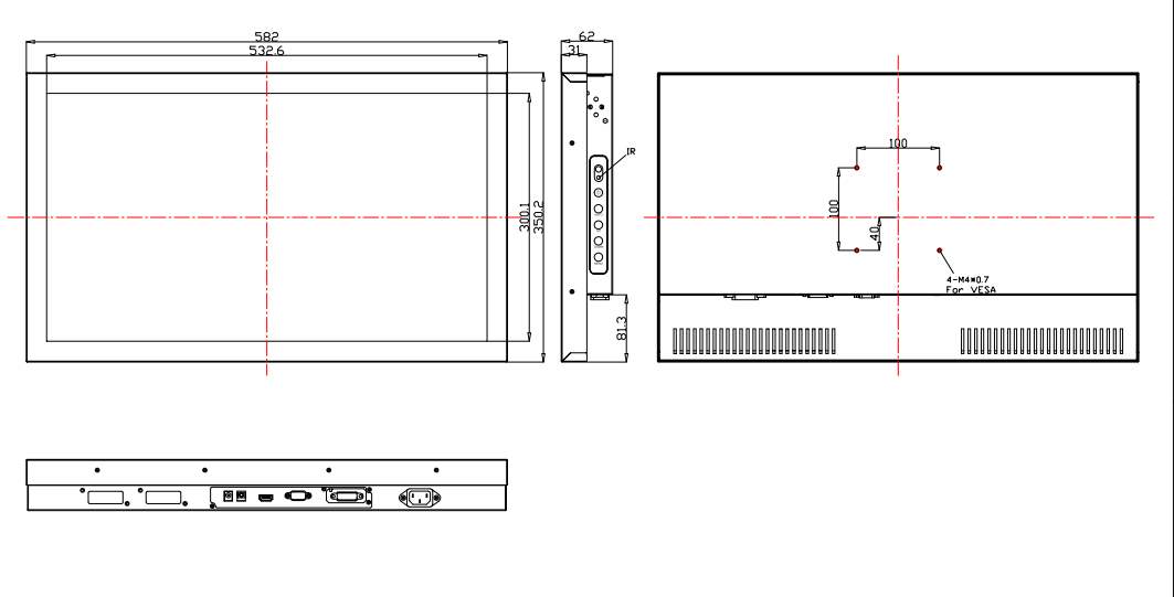 Монитор сенсорный встраиваемый AnTouch ANT-4310ip 43", PCAP (проекционно-ёмкостный), 1920х1080, 450 кд/м2, 10 касаний, DP, 2хHDMI, VGA, DVI, IP65, VESA, 2х10 Вт