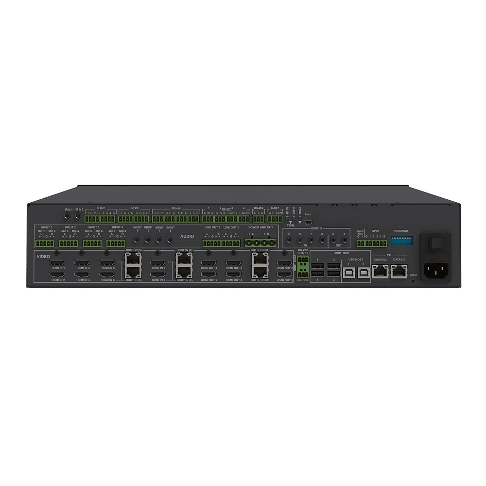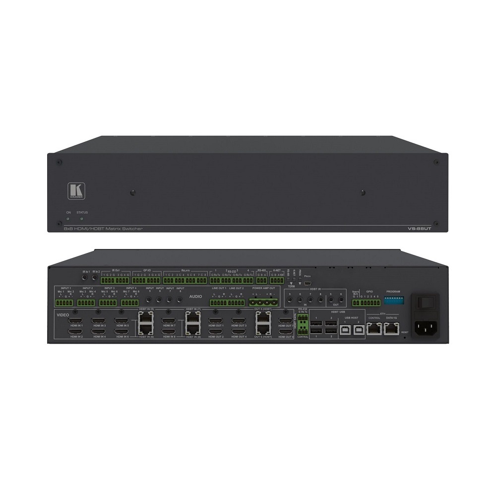 VS-88H2 – матричный коммутатор 8х8 сигналов HDMI c поддержкой разрешений до 4К@60 Гц (4:4:4) и технологии HDR, а также функцией независимого переключения цифровых аудиосигналов. Прибор осуществляет перетактирование входного сигнала, компенсацию АЧХ кабеля и переключение сигнала HDMI от любого из восьми источников сигнала, поддерживающих HDCP-кодирование, на любой из восьми выходов в любых комбинациях. VS-88H2 обладает непревзойденной гибкостью коммутации аудиосигналов, позволяя переключать любой эмбедированный цифровой аудиосигнал на любой цифровой выход в дополнение к восьми источникам обратного аудиоканала (ARC), что эквивалентно аудиоматрице размерностью 16x12.