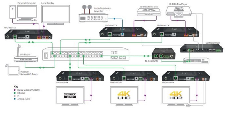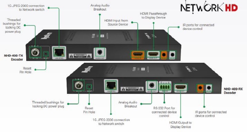 WyreStorm NHD-400-TX, передатчик HDR 4K UHD видео по IP с возможностью формирования видеостены, поддержка многоканального аудио, ультра низкая задержка.