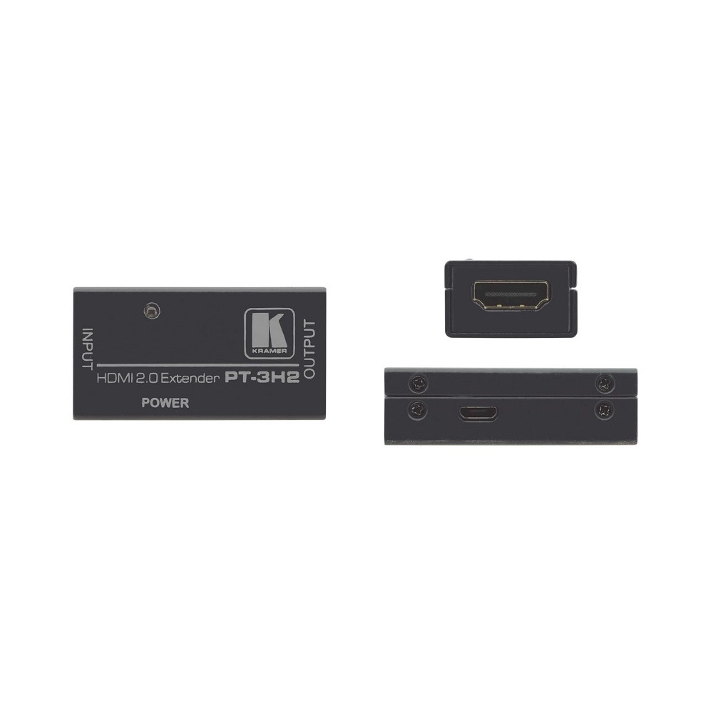 Kramer PT-3H2 – повторитель сигналов HDMI 2.0 разрешением до 4K/60 UHD (с цветовой субдискретизацией 4:4:4), в том числе защищенных HDCP 2.2. Дальность передачи сигналов: 10 м с каждой стороны для сигналов 4K/60 4:4:4, 25 м от источника и 15 м до потребителя для 4K/60 4:2:0 и 4K/30, 30 м от источника и 15 м до потребителя для 1080p/60. Сверхминиатюрный корпус, сравнимый по размеру со спичечным коробком. Поставляется без внешнего источника питания (опционально – питание по USB).