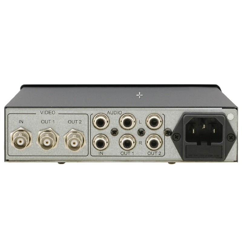 Усилитель-распределитель композитного видео и аудио стереосигналов. VM-2N принимает 1 входной сигнал и распределяет его на 2 идентичных выхода. Предусмотрены функции буферизации и изоляции выходного сигнала. Полоса пропускания, превышающая 400 МГц, позволяет использовать устройство на ответственных участках вещательного тракта.