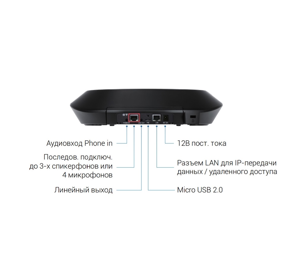 Благодаря возможности последовательного подключения, вы можете использовать до 4 дополнительных микрофонов или 2 дополнительных спикерфонов.