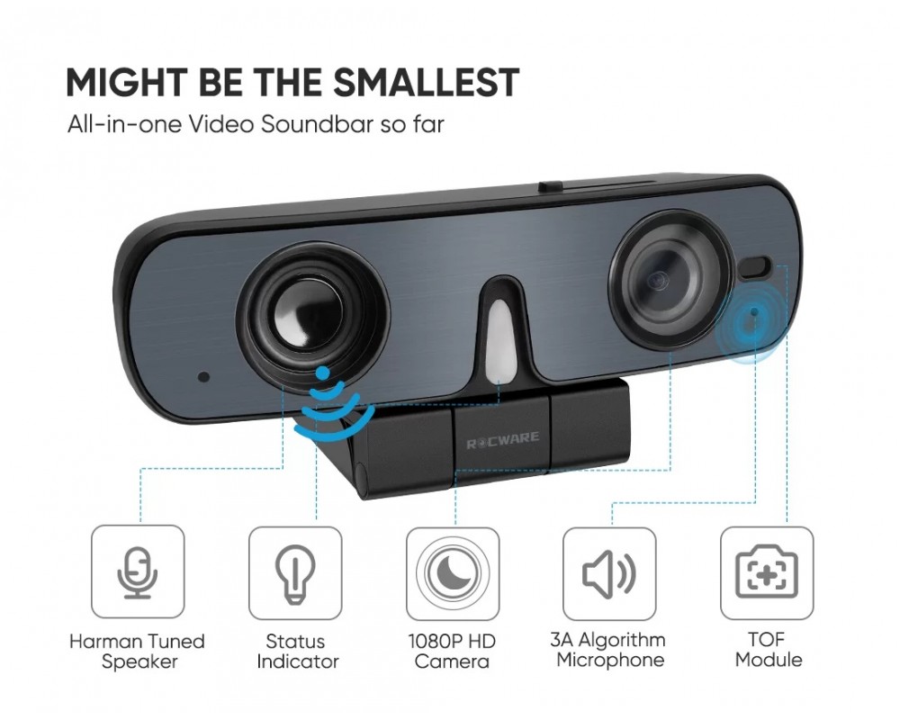 В начале 2022 года Rocware официально выпустила видеосаундбар RC08 Owl All-in-one. Это может быть самая маленькая звуковая панель в мире.