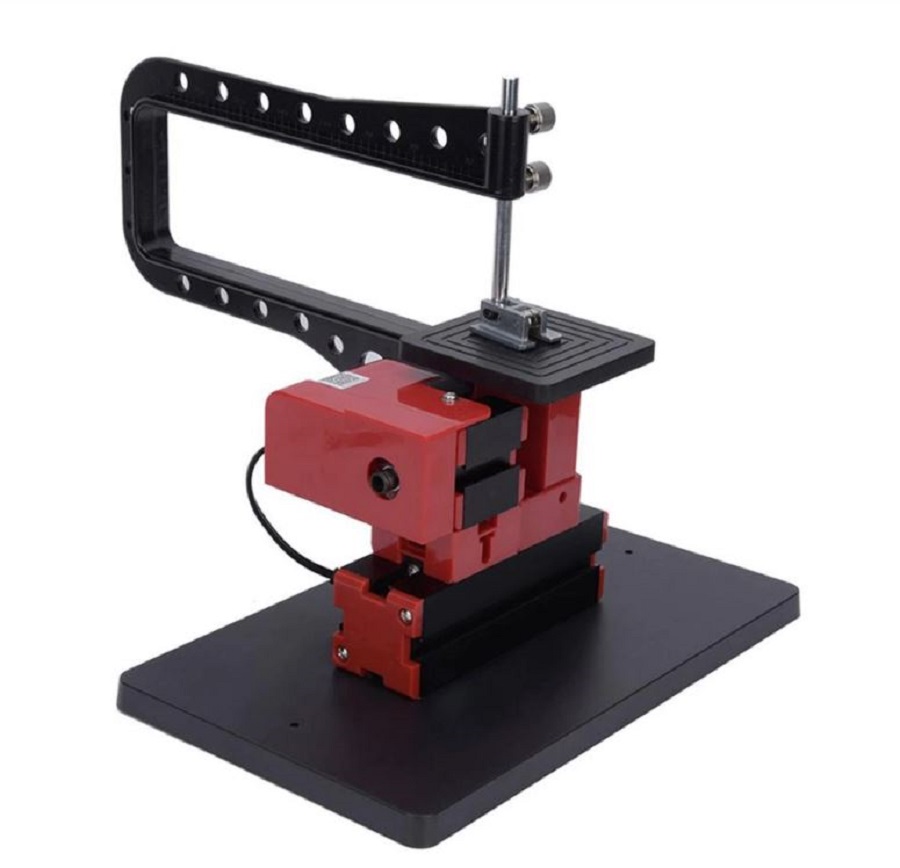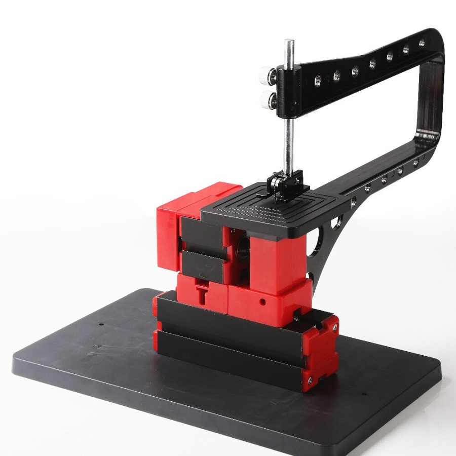 Корпус двигателя и шпиндель соединены между собой. Основные части включают центральный блок, основание лобзика, корпус лобзика, шестерню, стол лобзика, соединительную деталь, крышку приводного ремня и т. д. Все детали сделаны из легированного алюминия, кроме крышки приводного ремня. Благодаря специальной конструкции, возвратно-поступательное движение лезвия безопасных при контакте с пальцем.