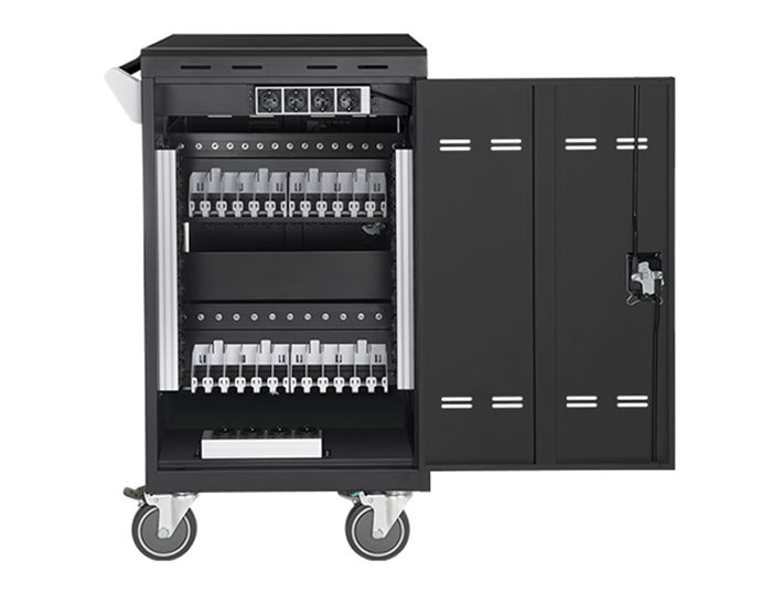 Устройства легко подключить и зарядить без необходимости настройки или риска перегрузки электросети. Просто подключите E24c к розетке, и сейф-тележка автоматически распределит питание между отсеками.