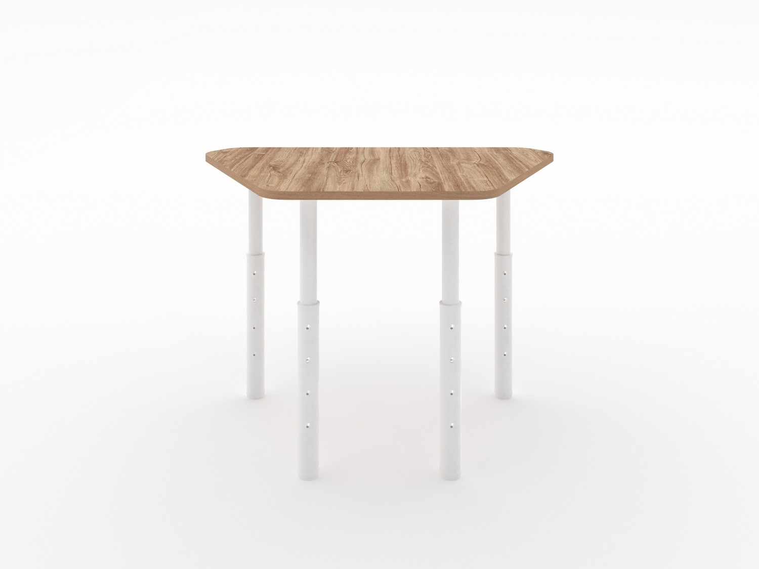 Детский растущий стол изготовлен в форме трапеции. Необычный дизайн столешницы позволяет эффективно задействовать имеющиеся пространства в ДОУ. Парты легко собираются в круг, линию или змейку, давая детям возможность развивать навыки общения и командной работы.