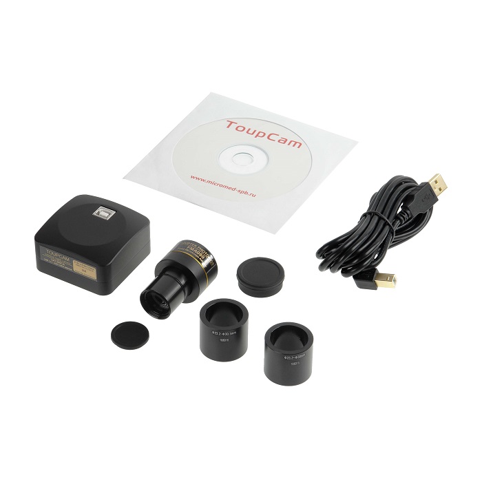 Благодаря комплектным адаптеру и переходникам, данную камеру можно использовать со всеми микроскопами Микромед. Съемный окулярный адаптер 0,5х имеет посадочный диаметр 23,2 мм.