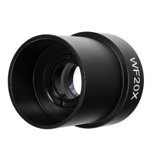 Окуляр ME20 для микроскопов MAGUS. У этой модели окуляра нет кольца диоптрийной подвижки, коррекцию можно выполнять с помощью кольца на тубусе микроскопа. Окуляр используется с объективами, имеющими увеличения 4, 10 и 20 крат. Посадочный диаметр окулярного тубуса – 30 мм. Предусмотрен вынос выходного зрачка 10 мм, чтобы было комфортно наблюдать в очках. Линзы окуляра изготовлены из оптического стекла, корпус из меди.