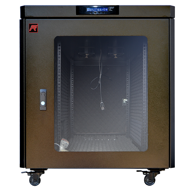 Для организации отвода вырабатываемого оборудованием тепла предусмотрено три встроенных вентиляционных модуля на верхней панели шкафа. Информация о состоянии воздуха отображается на LCD-дисплее с термодатчиком, установленном на передней панели.