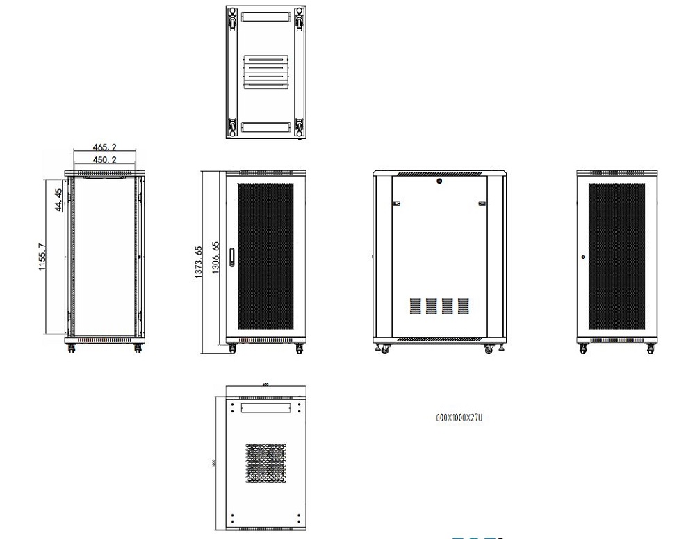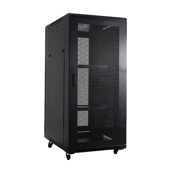Прочная телекоммуникационная напольная стойка обладает перфорированной передней дверью из стали с замком и съемными боковыми панелями. Перфорированная дверь обеспечивает уровень перфорации 75% для отличной вентиляции. Wize Pro W27U100R-M также включает в себя двойную блокируемую реверсивную заднюю дверь и отверстия для прокладки проводов сверху и снизу.