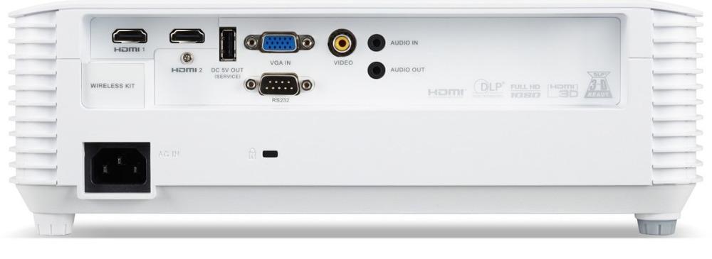 В проекторе Acer X1527i установлена лампа мощностью 250 Вт, срок службы которой составляет не менее 4000 часов. Коммуникационные возможности представлены видеовыходами HDMI и VGA, портом USB, аудиоразъемами, а также модулем Wi-Fi. Предусмотрена возможность воспроизведения контента мультимедиа с накопителей USB. А интегрированный динамик мощностью 3 Вт отвечает за создание четкого и насыщенного звука.