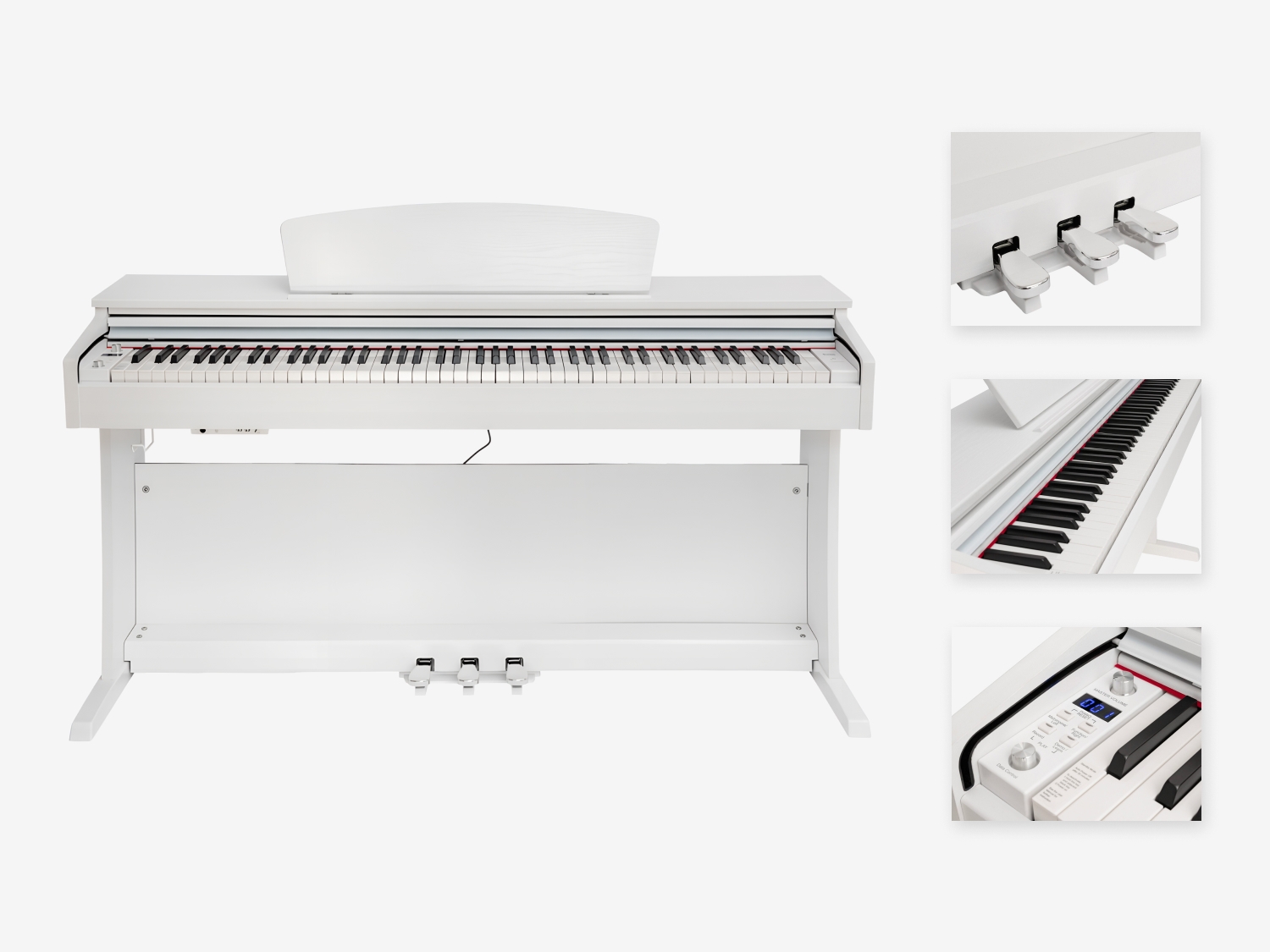 Пианино можно подключить к компьютеру и использовать в качестве MIDI клавиатуры. Клавиатура оснащена демпфером — клавиши не стучат. Можно играть гаммы, этюды и профессиональный репертуар.