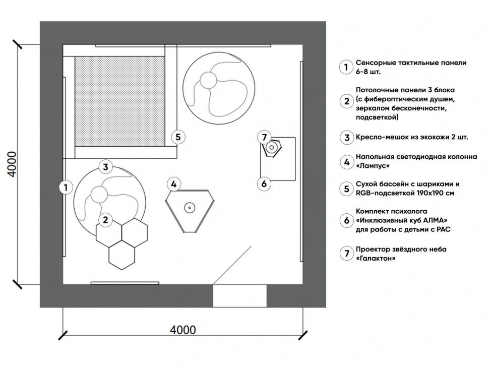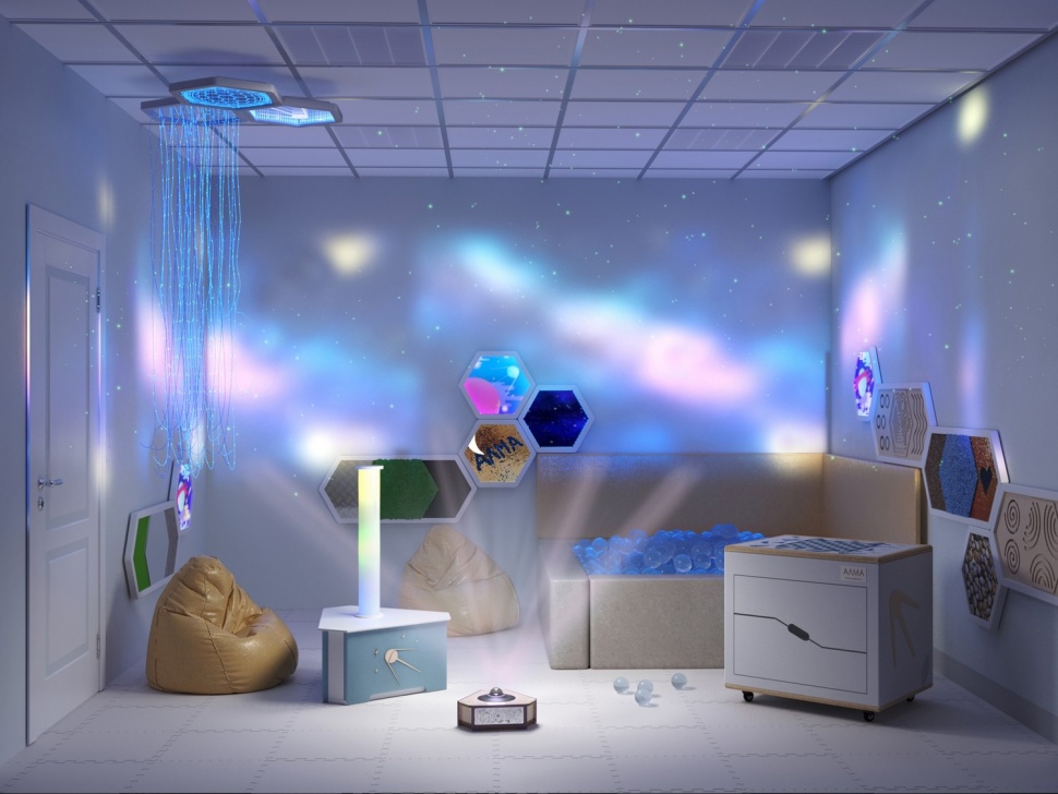 Комплект оборудования от компании «АЛМА» решает проблему с поиском различных поставщиков для обустройства сенсорной комнаты и позволяет комплексно оснастить помещение всем необходимым.