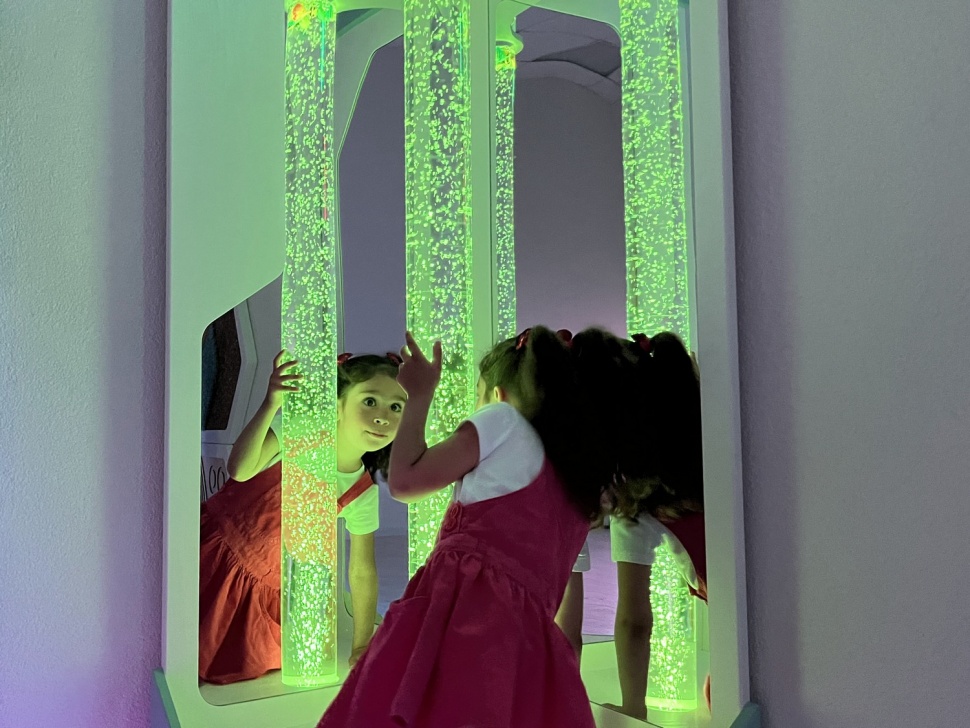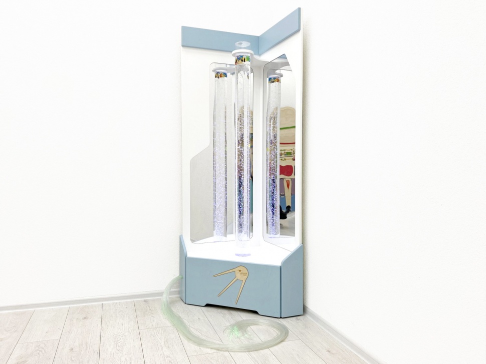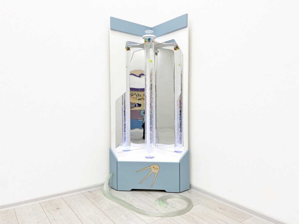 Для усиления расслабляющего и завораживающего эффекта за воздушно-пузырьковым цилиндром установлены небьющиеся акриловые зеркала. Они умножают пространство и создают глубину и загадочность.