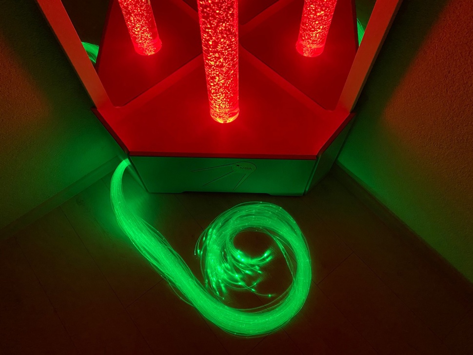 Воздушно-пузырьковая колонна имеет цветную подсветку, цвета в которой плавно сменяются. И вместе с кружащимся потоком пузырьков это производит на человека завораживающее действие - хочется ни о чём не думать, просто сидеть и смотреть.