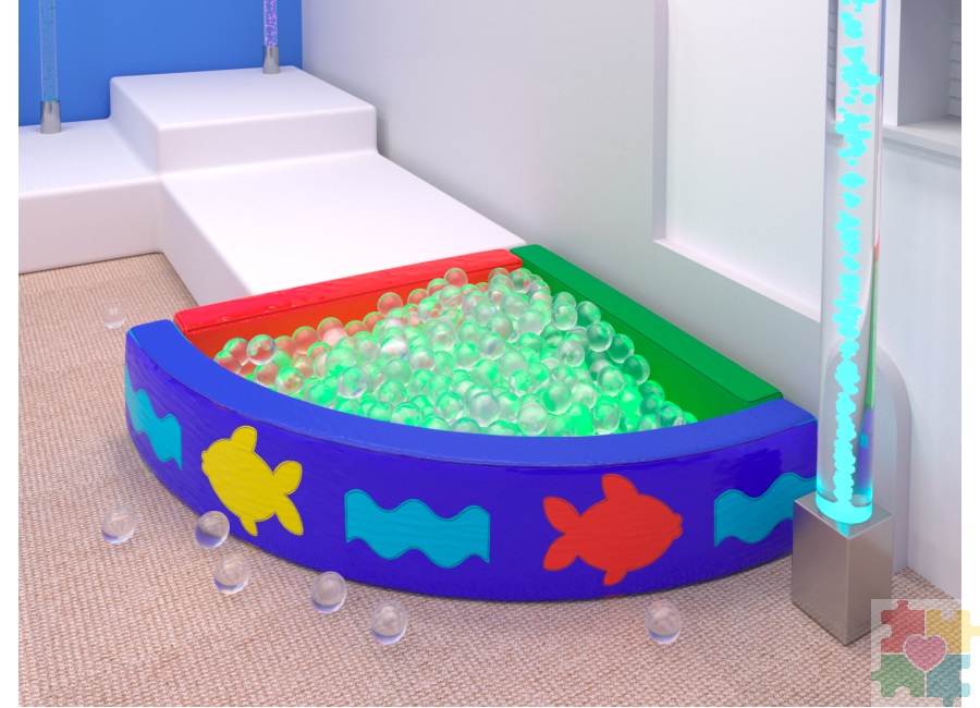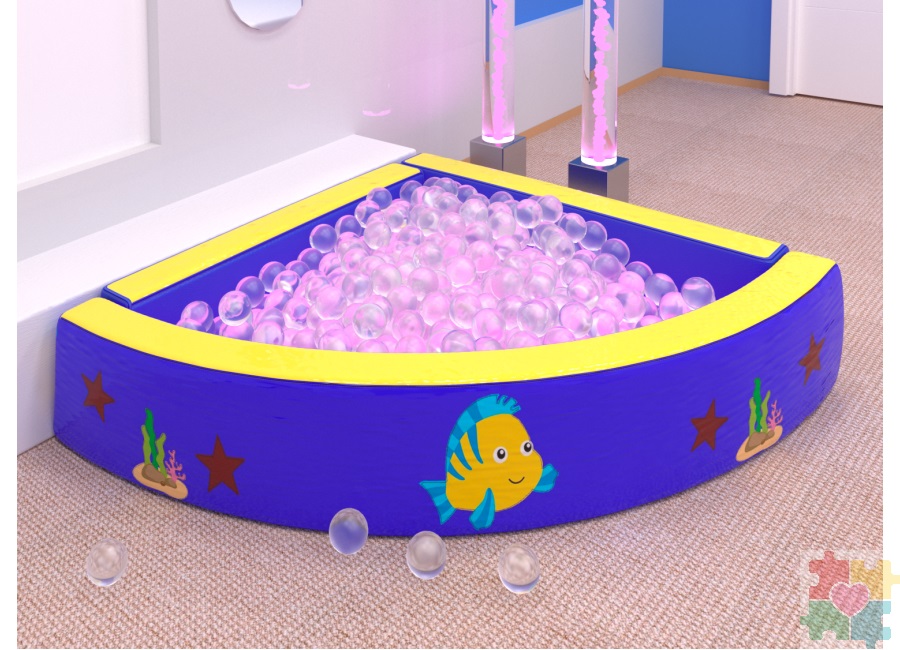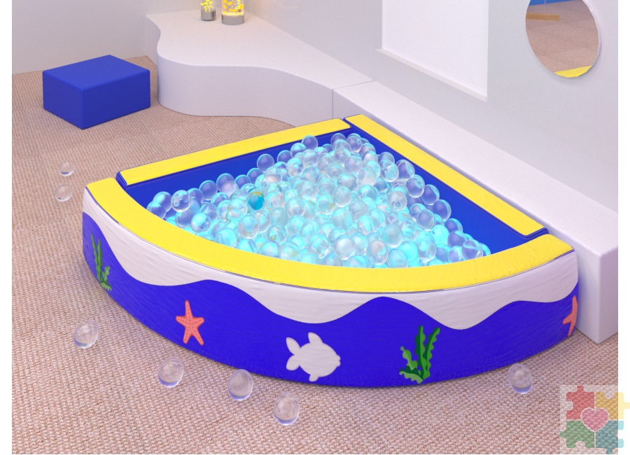 Угловой бассейн «Океан» станет замечательным дополнением для детской комнаты в инклюзивном или ресурсном центре, гармонично впишется в атмосферу детского садика или детского развлекательного пространства. Рекомендуем дополнить бассейн «Океан» комплектом прозрачных шариков и интерактивной светодиодной подсветкой, которые также можно купить у нас в магазине. Поистине волшебная атмосфера этого необычного сочетания не оставит равнодушными никого!