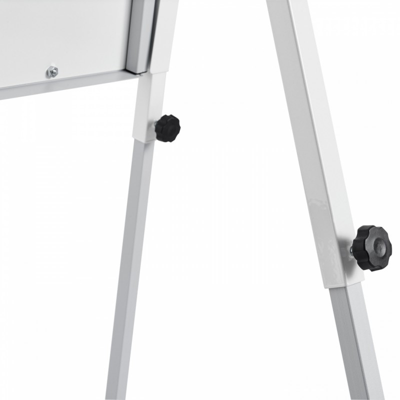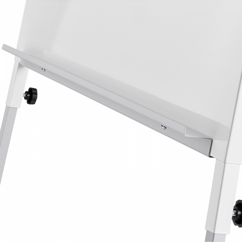 Флипчарт укомплектован 2 боковыми планками, которые позволяют в 3 раза увеличить используемую для презентаций поверхность. Также оснащен встроенной полочкой для маркеров по всей ширине пишущей поверхности. Тренога бесступенчато регулируется по высоте.