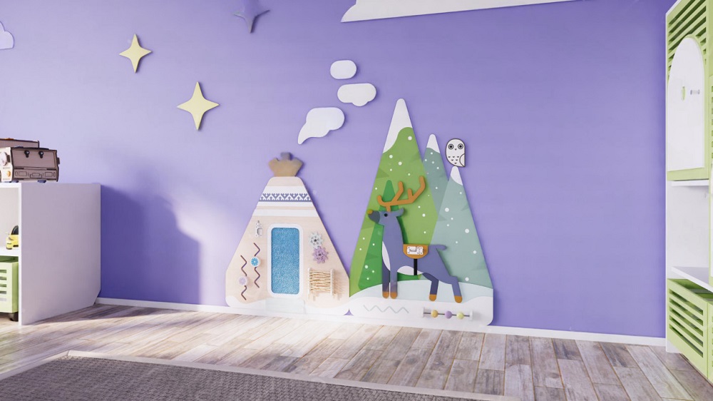 Панель выполнена из качественного, тщательно обработанного МДФ, покрыта безвредными красками и полностью соответствует стандартам качества, так что она подходит для использования в учреждениях дошкольного образования. Оборудование можно устанавливать даже в небольших помещениях: оно не занимает много места, помогает визуально разделить комнату на зоны и обеспечить детям безопасное игровое пространство.