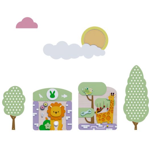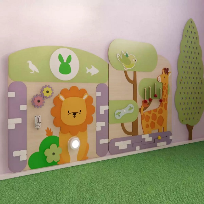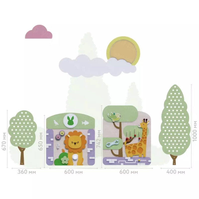 Декоративно-развивающая панель "Зоопарк" полностью безопасна для ребенка. не имеет аллергенов, острых углов и соответствует всем требованиям к ясельному оборудованию.