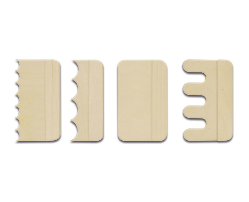 Набор состоит из четырех предметов: разравнивателя и трёх гребенок, предназначенных для нанесения узоров на поверхности песка.