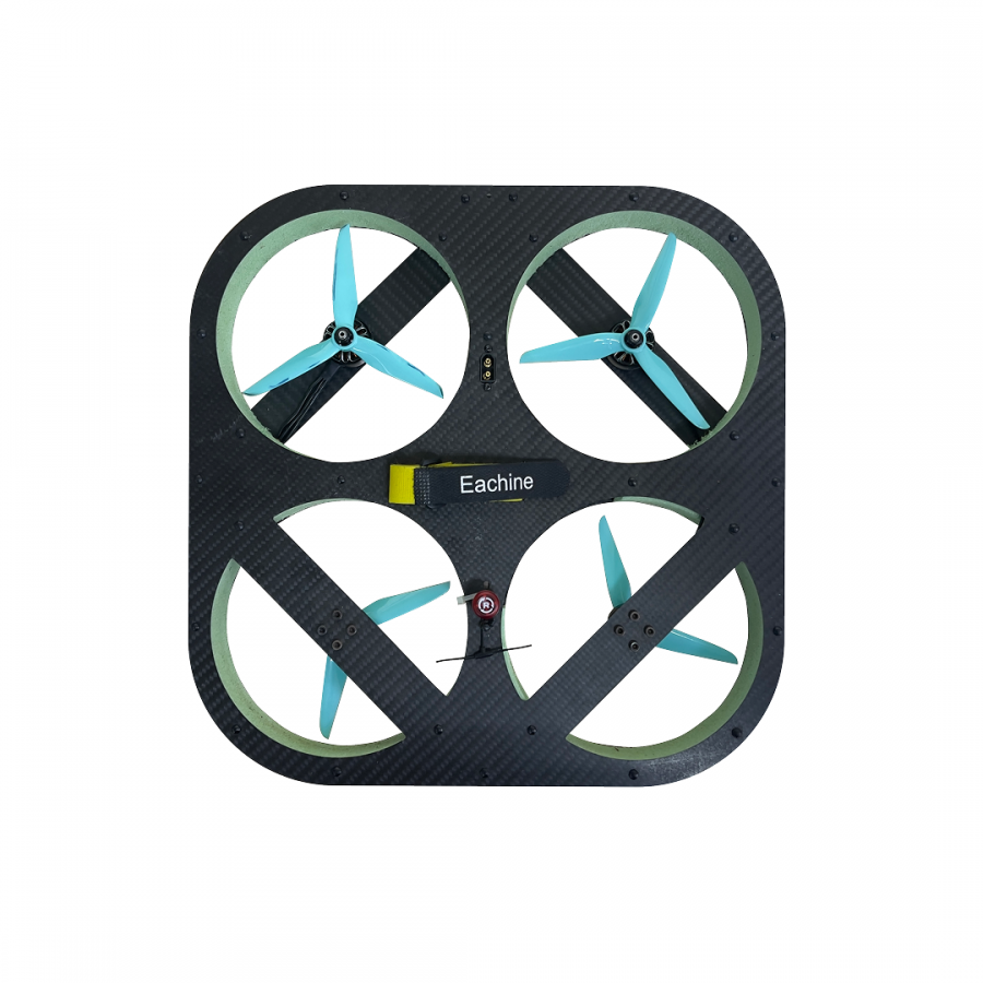 Пружинящая рама из карбона вантового типа. Вантом является пластина, в центре которой крепится силовой двигатель. За счет крепления пластины с обеих сторон к остальным элементам конструкции создается система натяжения, равномерно распределяющая векторы тяги двигателей. Нагрузка во время полета распределяется с тройным резервом по прочности. Хорошо держит баланс за счёт разнонаправленных двигателей. Подходит для соревнований.