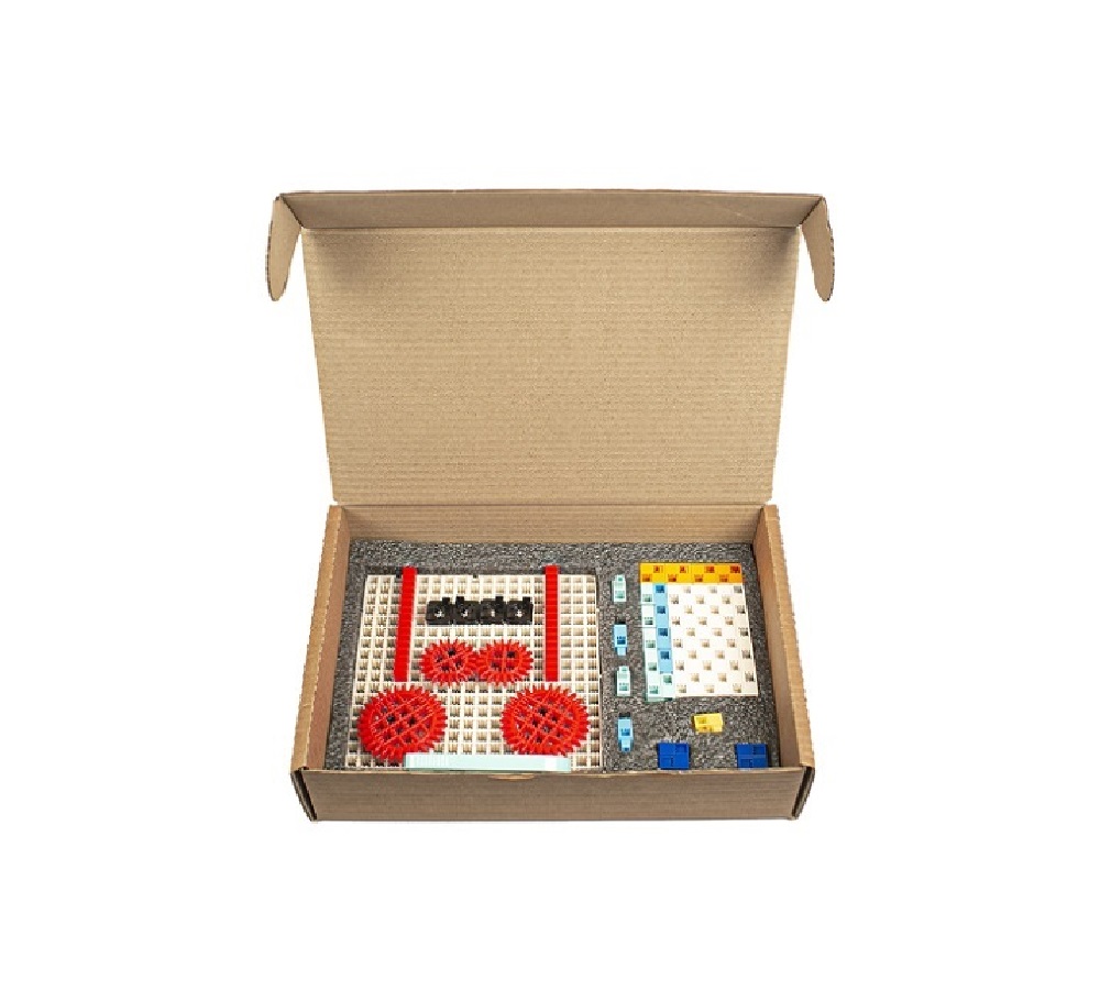 Комплект позволяет создать 19 механизмов - от зонтика до автомобильного дифференциала. Может служить демонстрационным набором при изучении машин и механизмов. Комплект предназначен для ознакомления ребёнка с простейшими составными механизмами и для формирования навыков конструирования и применения механизмов в жизни.