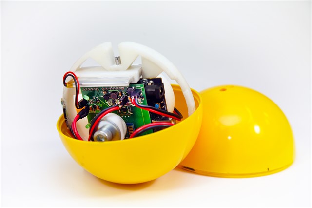 Корпус устройства в собранном виде представляет собой сферу, внутри которой размещается рама с установленными на ней платой микроконтроллера, платой расширения, аккумулятором и системой бесконтактного включения.