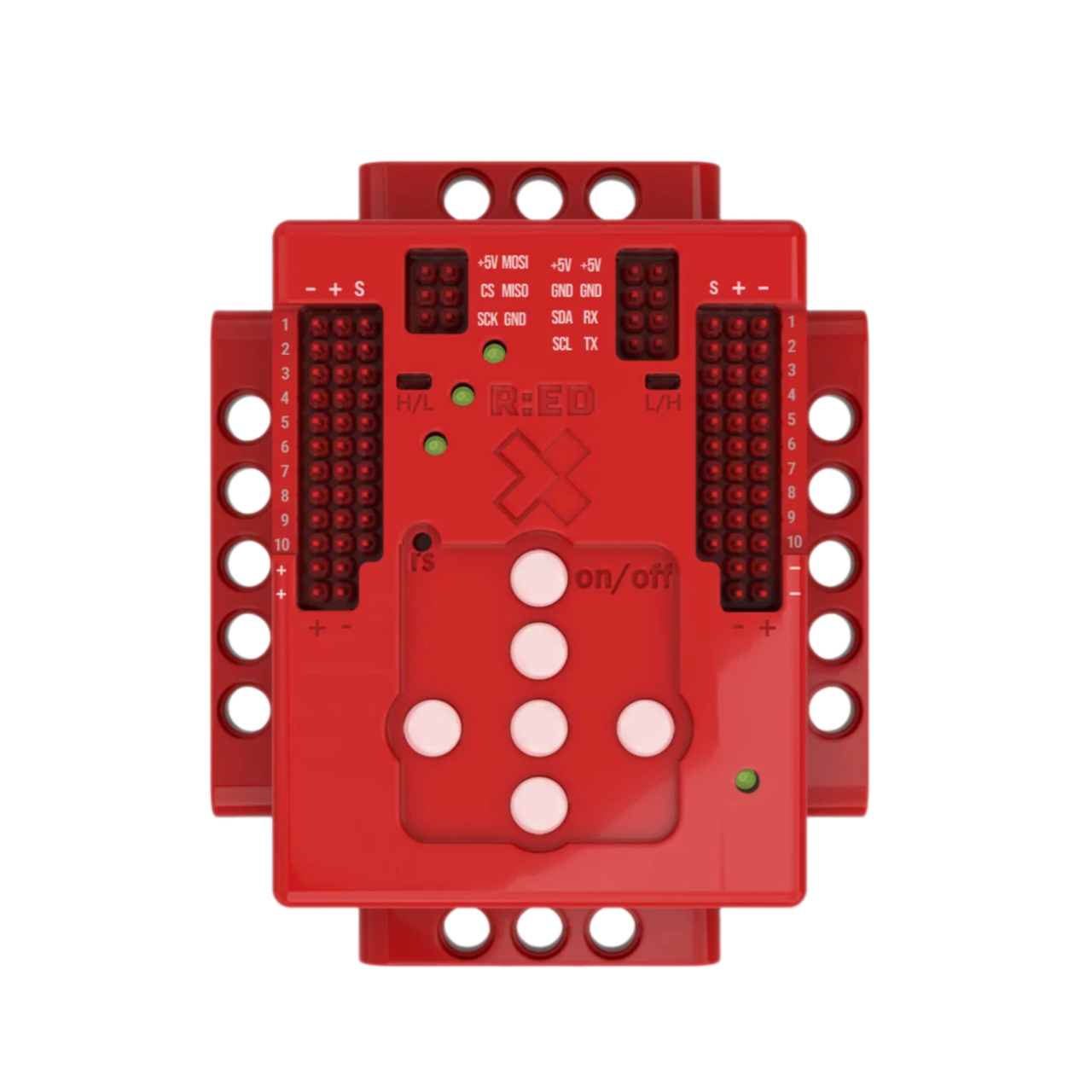 27 портов для подключения внешних устройств: 10 цифровых портов, 10 аналоговых портов, 1 USART, 1 I2C, 1 SPI, 4 порта для управления моторами постоянного тока, питание от 6 элементов питания типа AAA напряжением 1.2В.